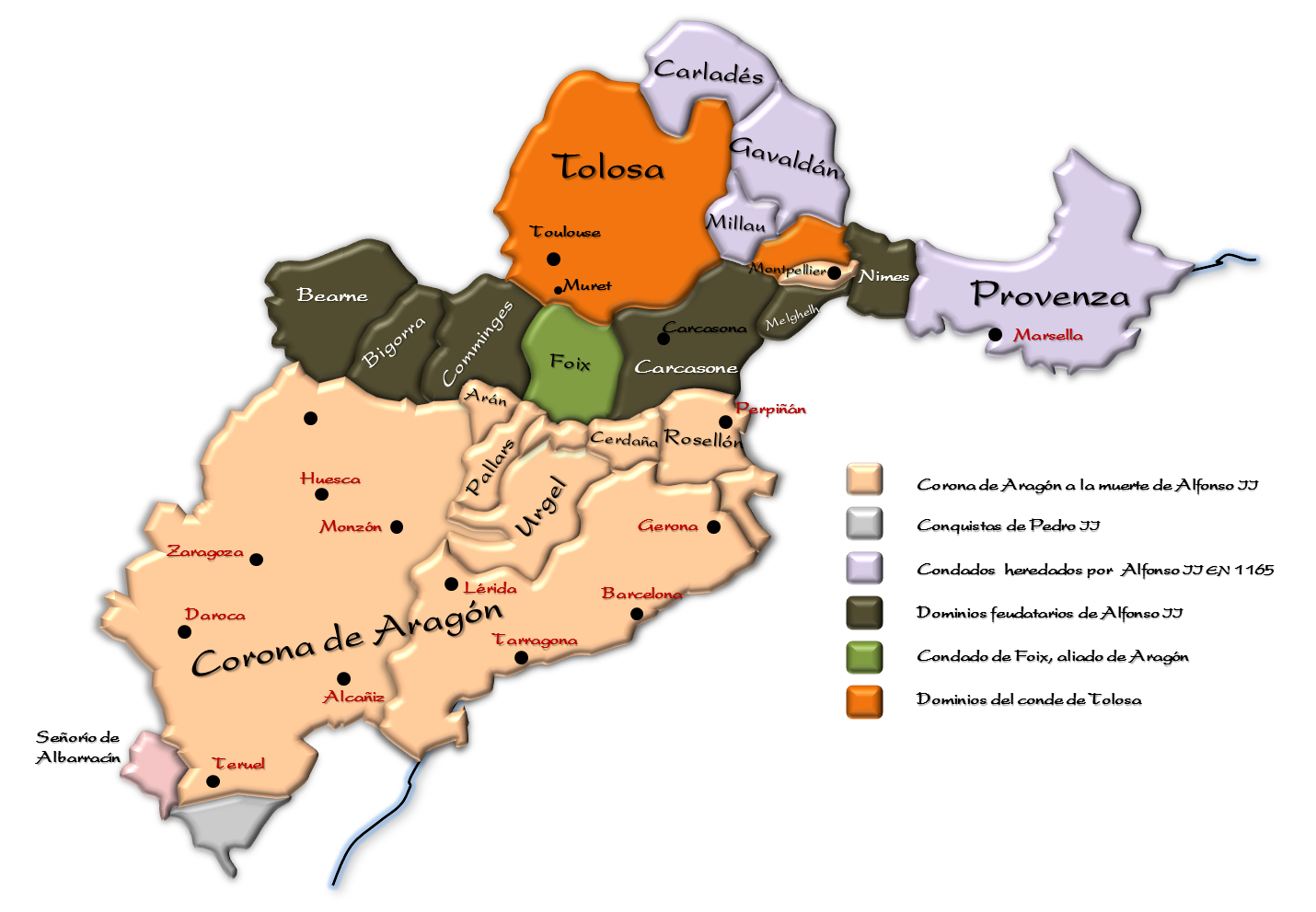 Al morir Ramón Berenguer en 1162, su hijo y heredero Alfonso II se convierte en conde de Barcelona y en 1164, tras la donación formal de la reina Petronila del reino a su hijo, asume la soberanía de la Corona de Aragón.