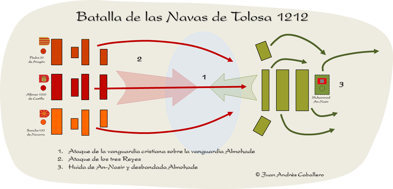 En 121 el rey de Castilla, Alfonso VIII, dirigió una batalla decisiva contra los Almohades en las Navas de Tolosa, en la que participaron junto al rey castellano, Sancho VII de Navarra y Pedro II de Aragón. La victoria cristiana sobre el caudillo almohade Al-Nasir, despejó el camino de la reconquista del sur peninsular. Pedro II abrió una brecha en el muro de la ciudad de Úbeda por el que penetraron los ejércitos cristianos y arrasaron la ciudad y esclavizaron o degollaron a sus habitantes. Los reyes cristianos habían conseguido reforzar su prestigio guerrero y obtener un cuantioso botín.