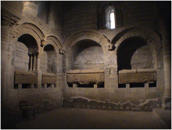 Tumba de Pedro II en el Monasterio de Sijena junto a Doña Sancha, Dulce y Leonor