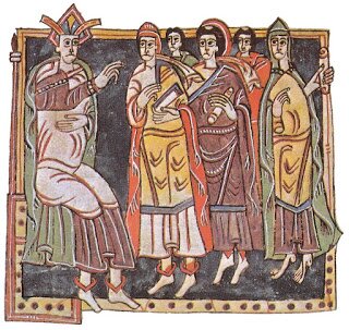 Recaredo dirigiéndose a los miembros del Concilio III de Toledo