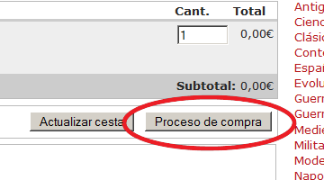 Para ello sólo hay que pulsar sobre el botón correspondiente, que es el que está situado abajo a la derecha y está etiquetado como Proceso de Compra.