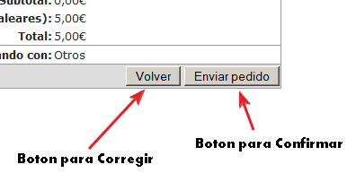 En la pantalla de revisión de pedido podremos comprobar si todo es correcto y si queremos cambiar cualquier dato no tenemos más que pulsar sobre el botón Volver.